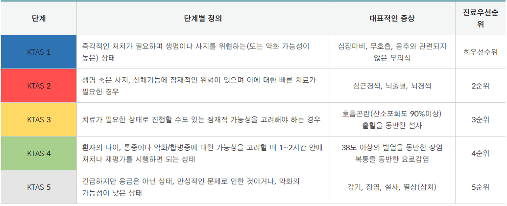 [그림 1] KTAS(Korean Triage and Acuity Scale : 한국형 응급환자 분류도구)