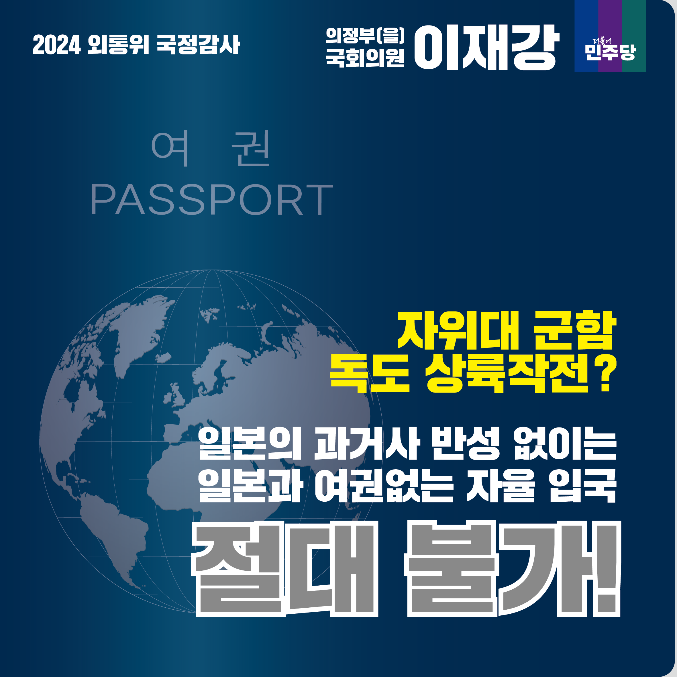 [국회의원 이재강 국정감사 카드뉴스] 일본의 과거사 반성 없이는 일본과 여권 없는 자율 입국 절대 불가!