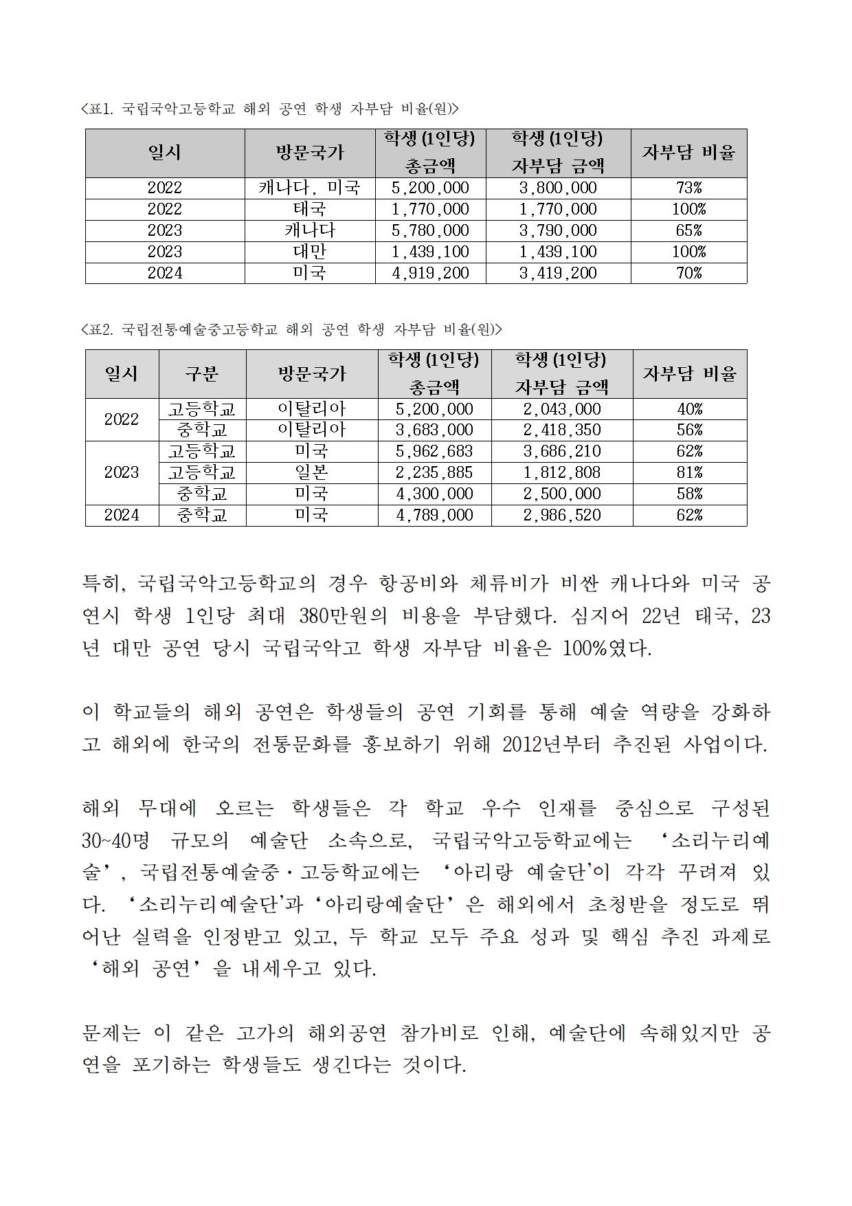 [이기헌 의원(고양시 병) 보도자료]교직원은 0원, 학생은 380만원 들여가는 해외공연