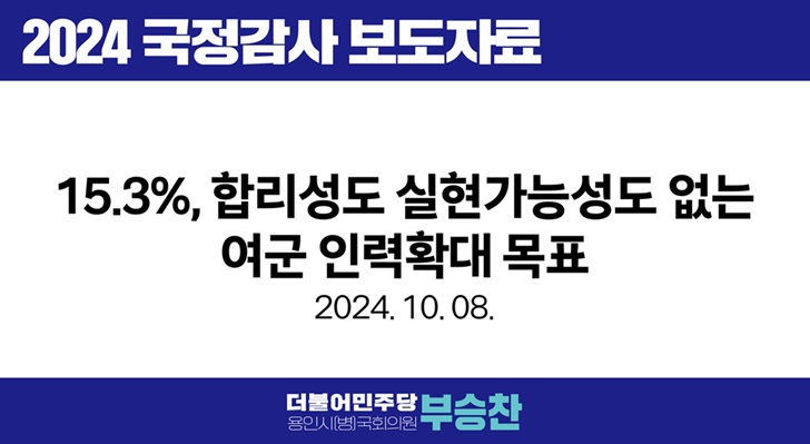 [국회의원 부승찬] 15.3%, 합리성도 실현가능성도 없는 여군 인력확대 목표