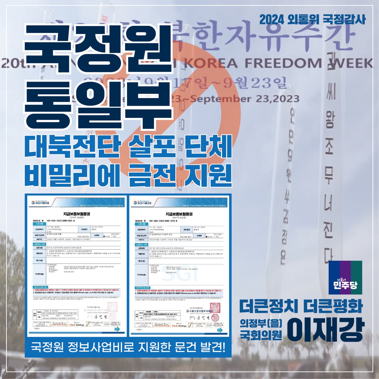 [국회의원 이재강 국정감사 카드뉴스] 국정원 통일부 대북전단 살포 단체 비밀리에 금전 지원