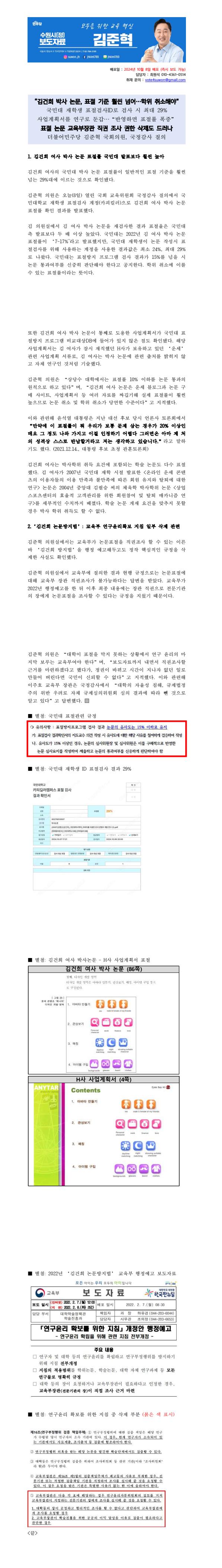 [국회의원 김준혁 국정감사 보도자료] 김건희 박사 논문, 표절 기준 훨씬 넘어..학위 취소해야