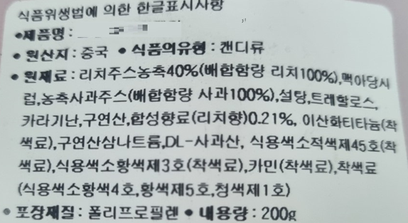 - 박희승 의원실 무작위로 선정한 시중 유통 젤리 103개 식품 표기 분석