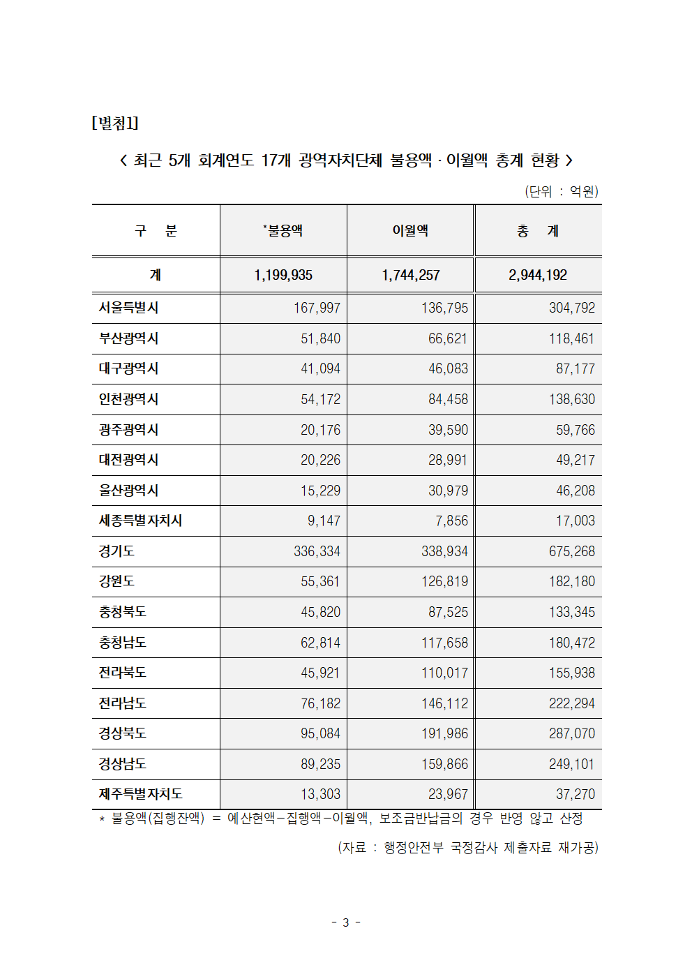 [한병도의원]2024행안위국정감사보도자료(2)_지난 5년 지방정부 편성하고 못 쓴 돈 294조원 달해.hwp