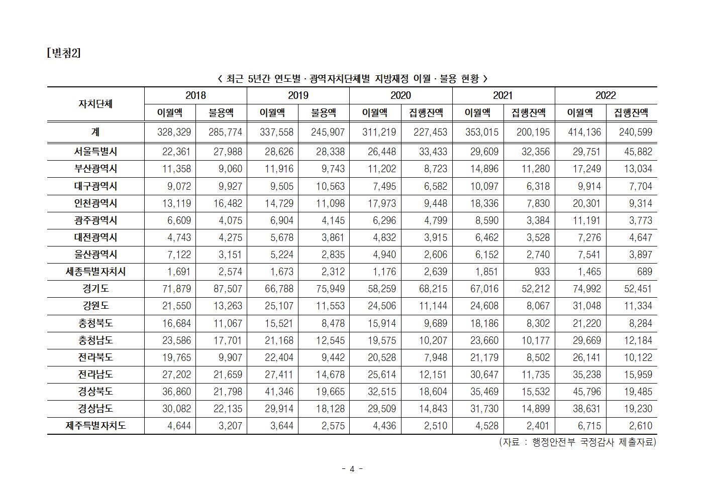 [국회의원 한병도 국정감사] 지난 5년 지방정부 편성하고 못 쓴 돈 294조원 달해