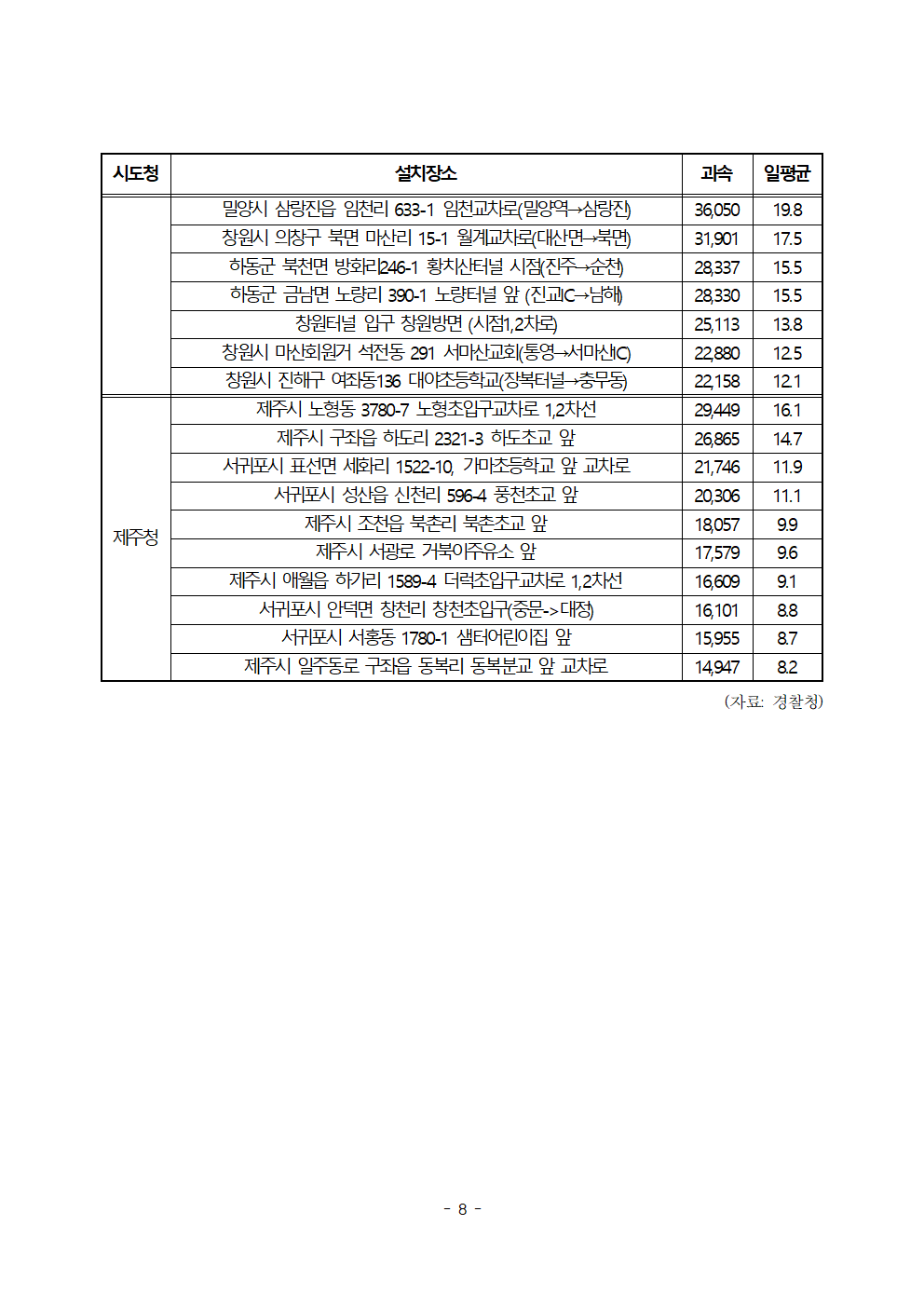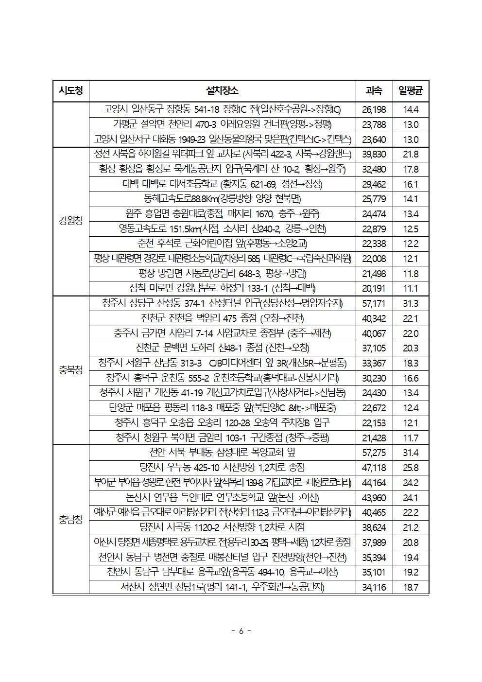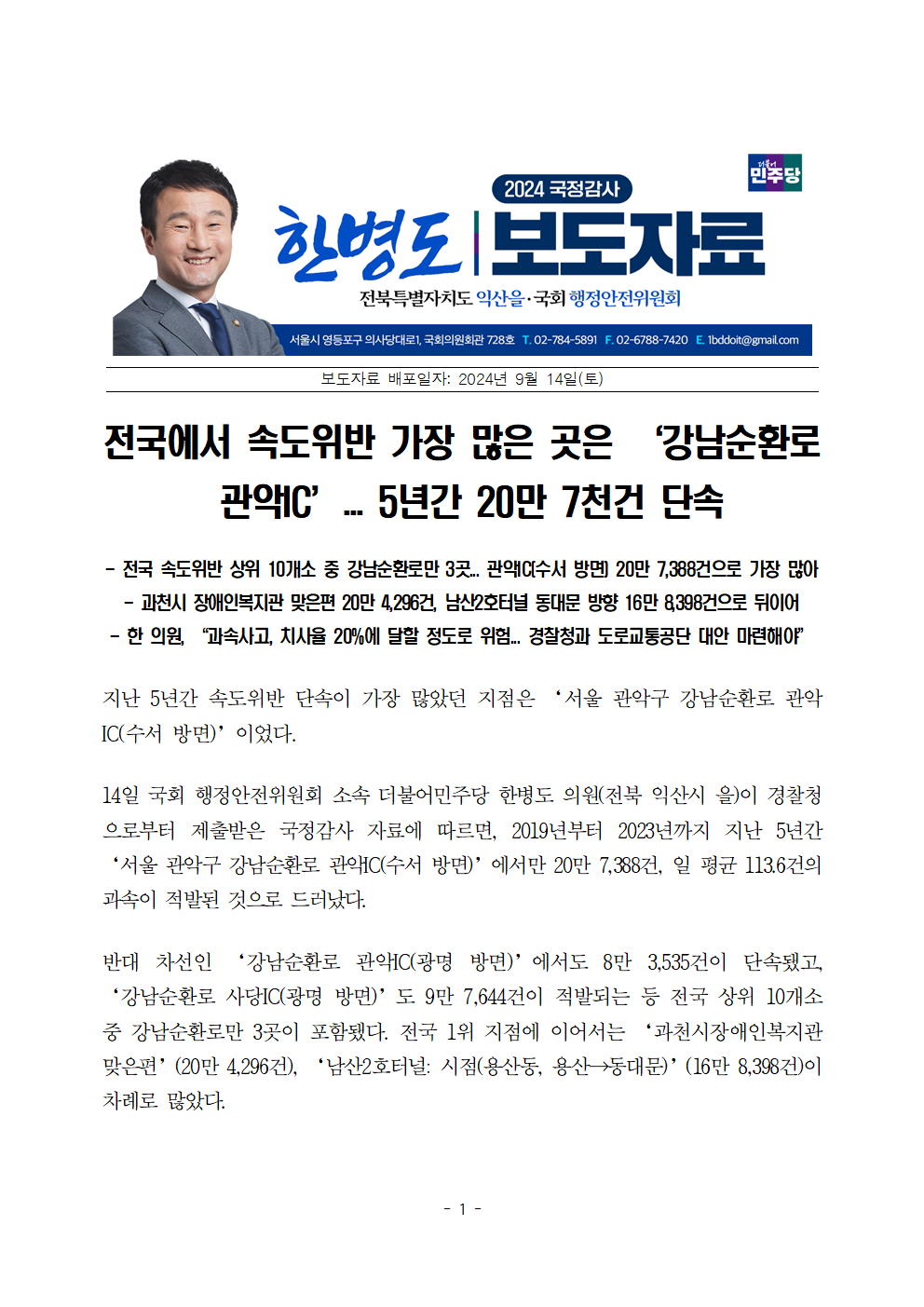 [한병도의원]2024행안위국정감사보도자료(12)전국에서 속도위반 가장 많은 곳은 ‘강남순환로 관악IC’... 5년간 20만 7천건 단속.hwp