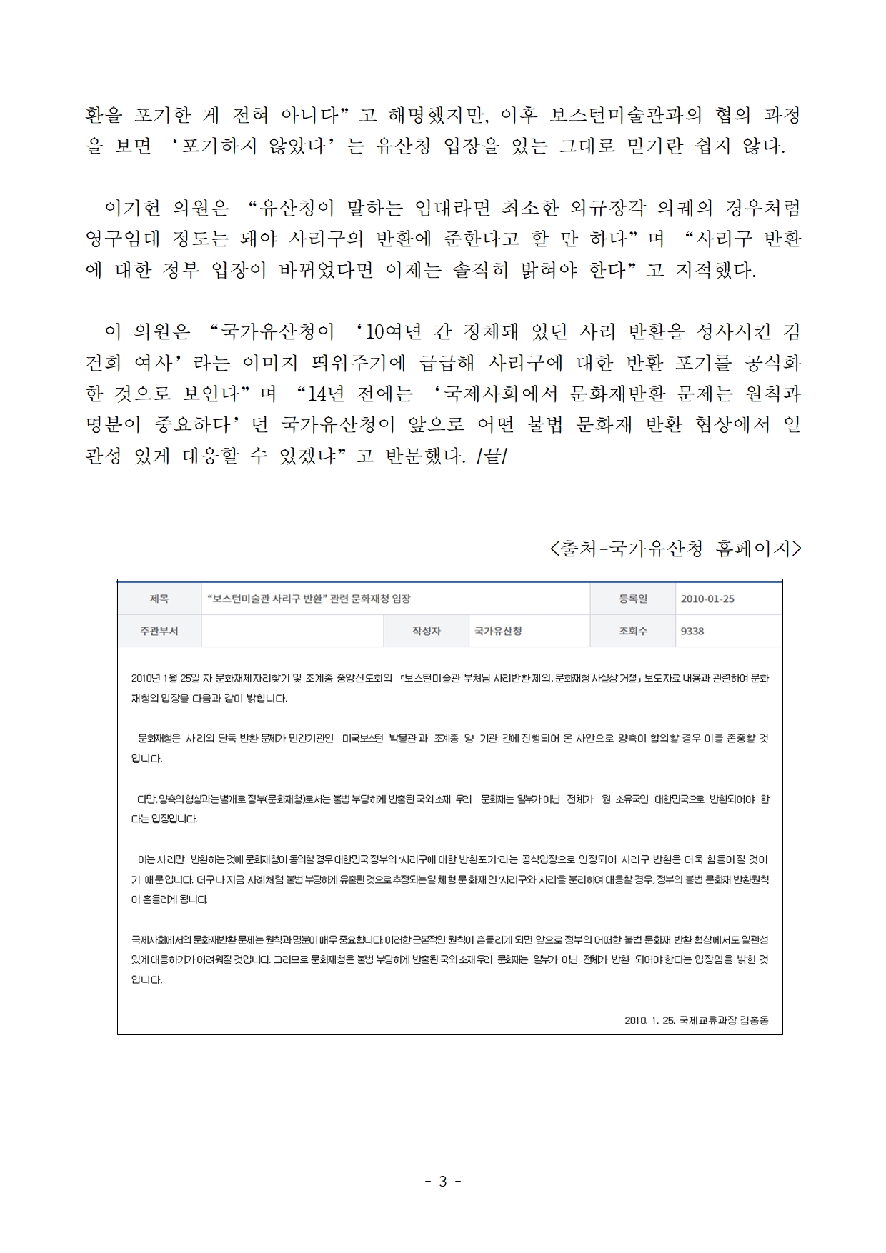 [이기헌 의원(고양시 병) 보도자료]'압류 면제' '대여 종료시 반환' 조건 붙은 보스턴미술관 소장 사리구 대여