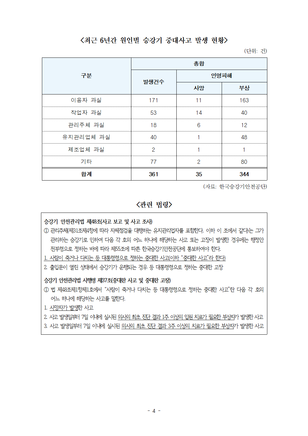 [한병도의원]2024행안위국정감사보도자료(20)안전검사 받아도 반 년 채 못 넘겨…승강기 중대사고 사상자 연평균 63명.hwp