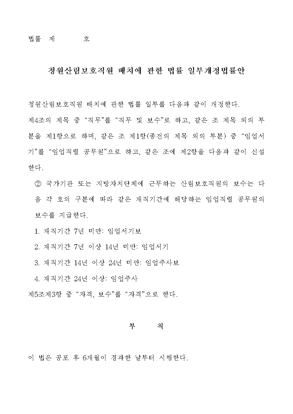[윤준병 의원 국정감사 보도자료] 윤준병 의원, 국정감사 대안 ‘청원산림보호직원 처우개선법’ 발의