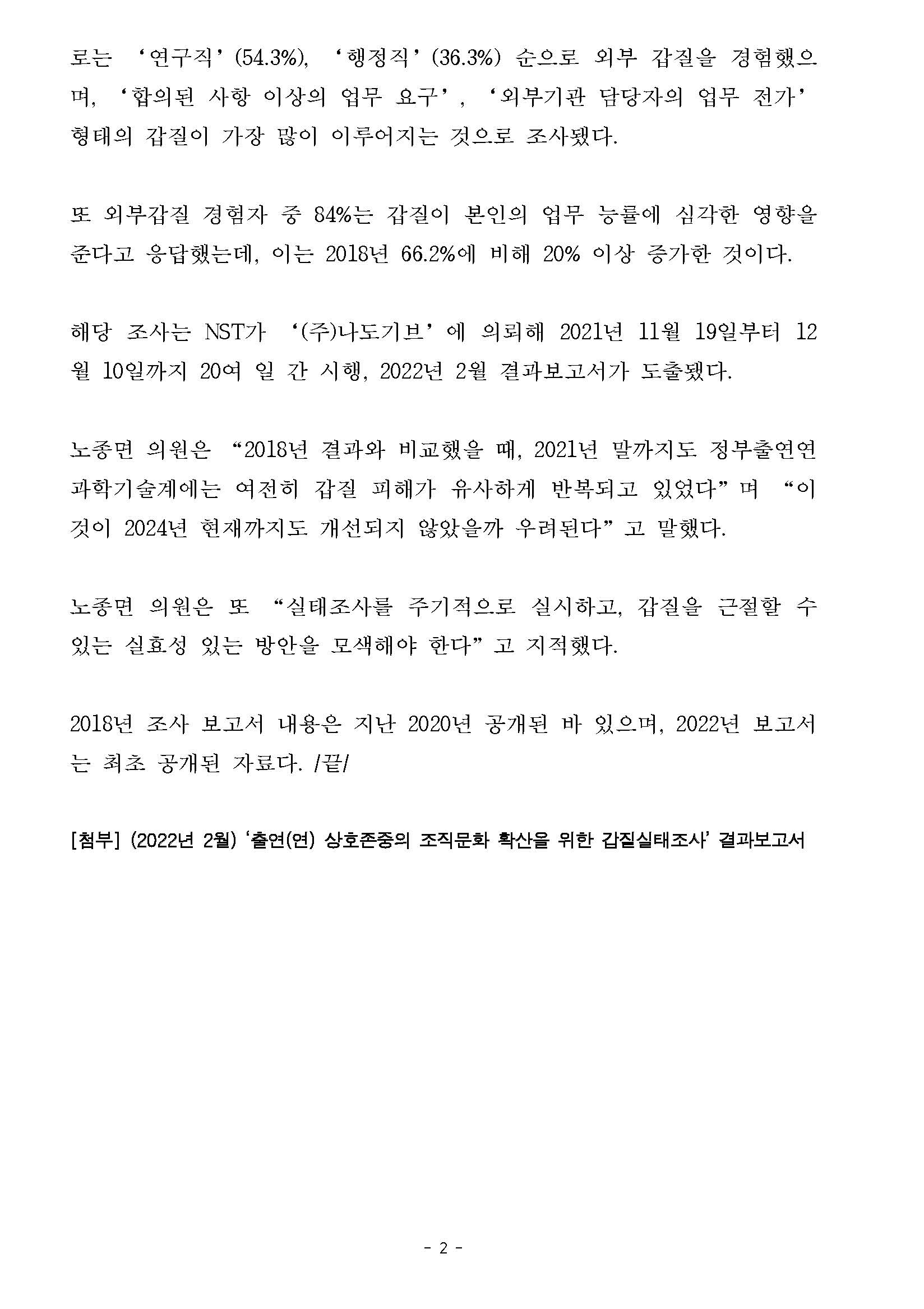 241017_노종면의원_보도자료_과학기술계_정부출연연_‘내ㆍ외부_갑질’심각__‘외부_갑질_심각성’_4배_가량_증가.hwp