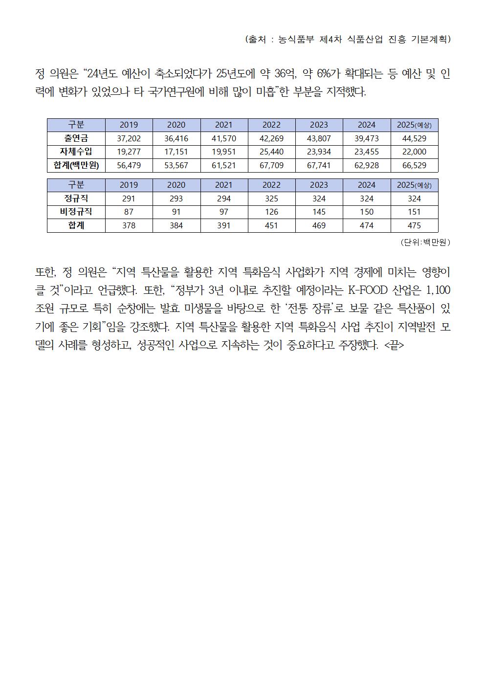 241017 국감보도자료_정동영실_한국식품연구원_지역특화산업과 연계한 특화음식 사업화는 지역발전 핵심전략.hwp