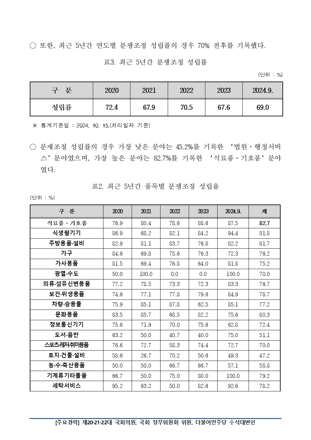 [국회의원 조승래] 최근 5년간 한국소비자원 피해구제 합의율 가장 낮은 분야는 ‘보험’