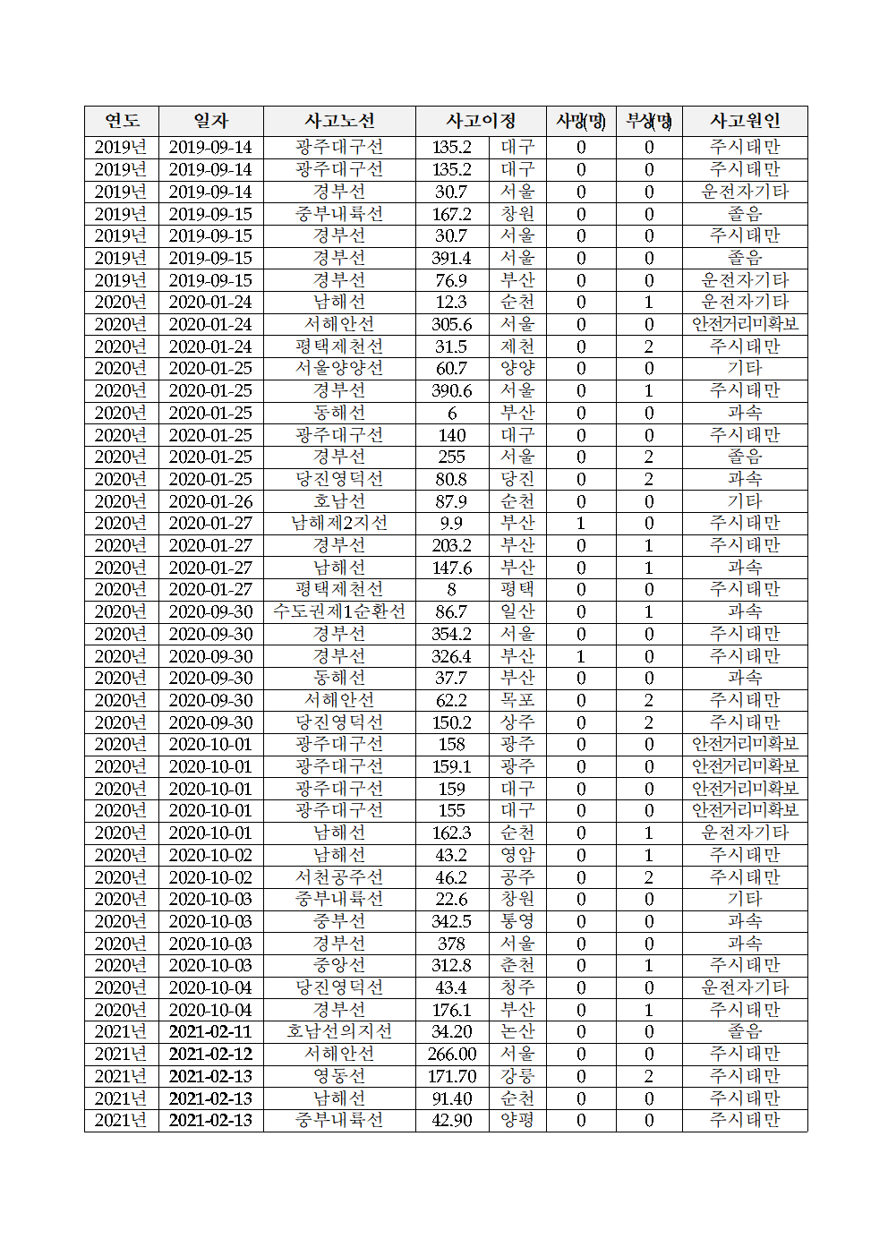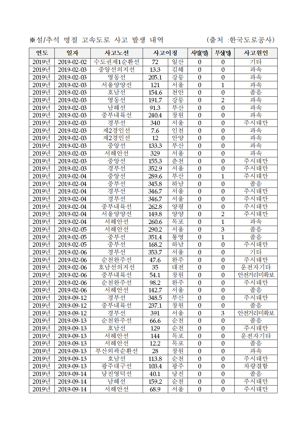 [이춘석 의원 국정감사 보도자료] 이춘석 의원 명절 연휴 고속도로 교통사고 '주시태만' 50% 1위