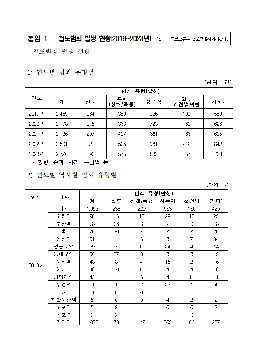 [국정감사 보도자료] 240922_이춘석 의원_ 철도시설 및 열차 내 범죄 매년 평균 2_500여 건 발생_ 성폭력이 최다.hwp