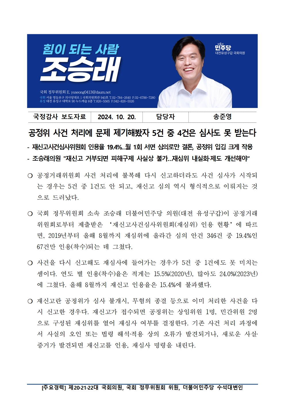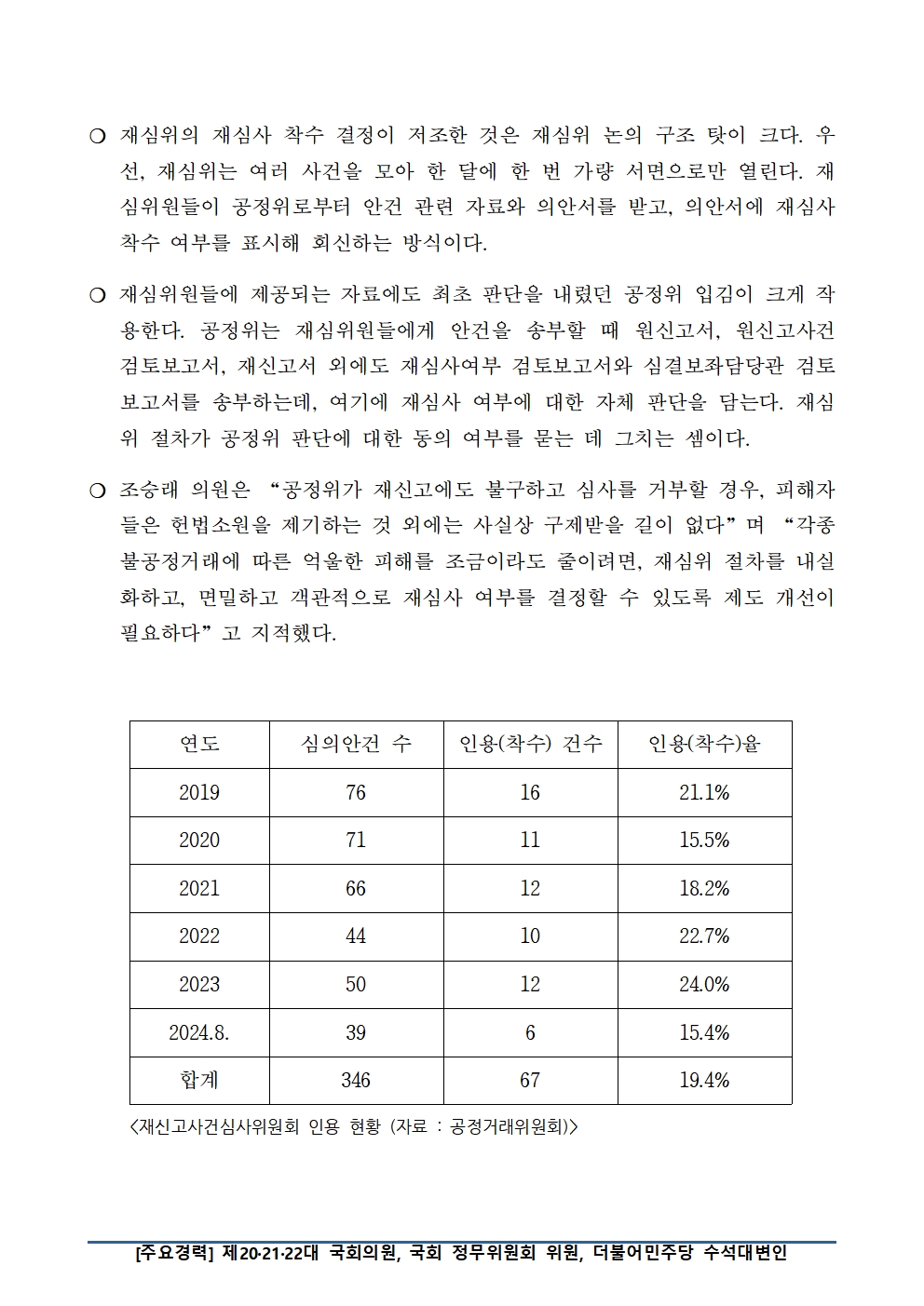 [국회의원 조승래] 공정위 사건 처리에 문제 제기해봤자 5건 중 4건은 심사도 못 받는다