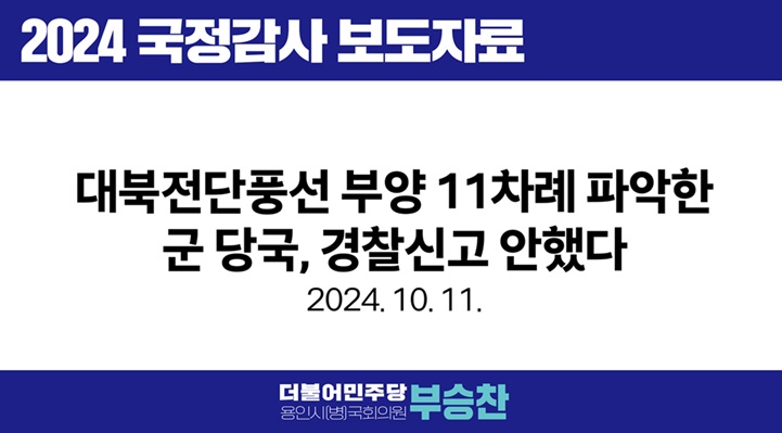 [국회의원 부승찬] 대북전단풍선 부양 11차례 파악한 군당국, 경찰 신고 안했다