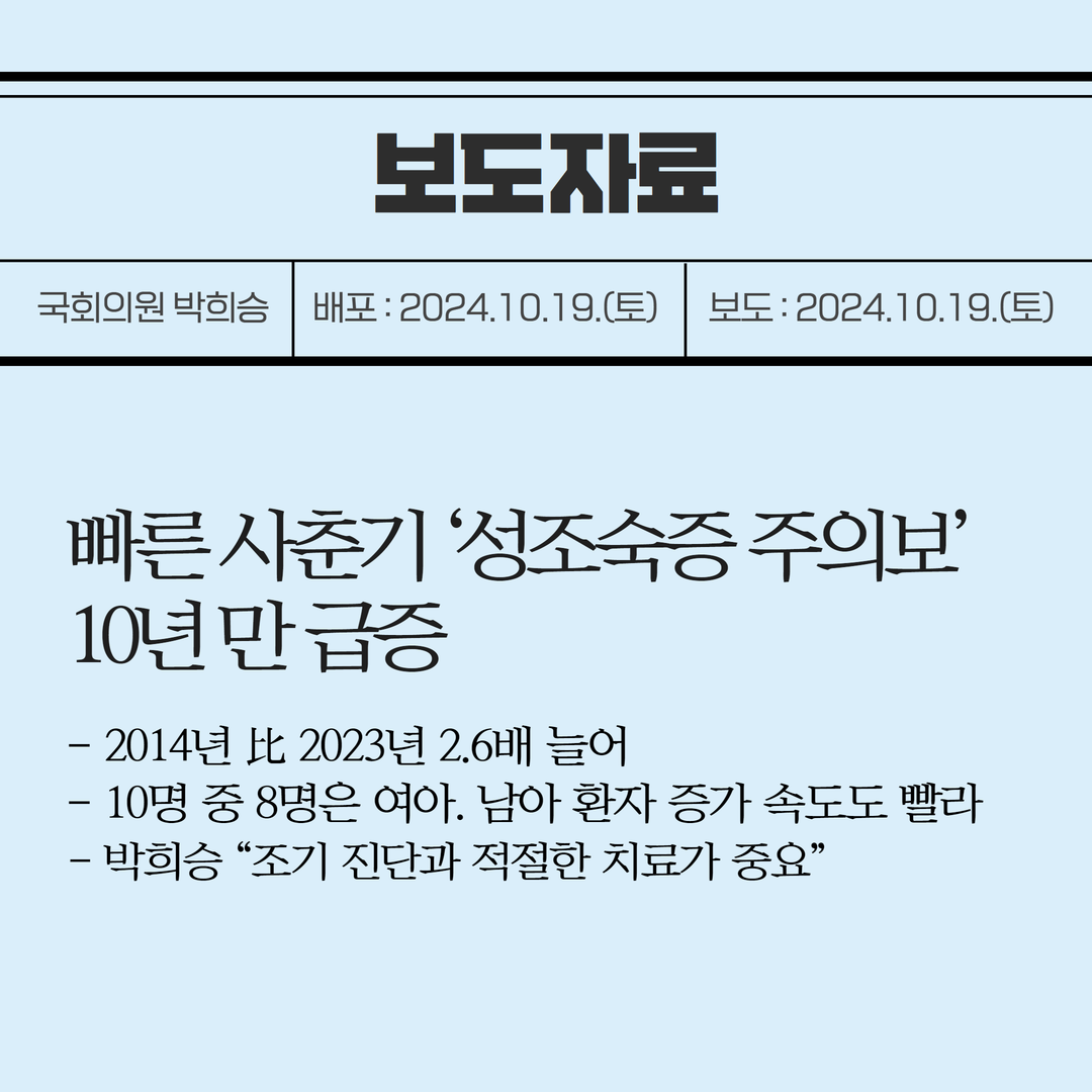 [국회의원 박희승 보도자료] 빠른 사춘기 ‘성조숙증 주의보’10년 만 급증