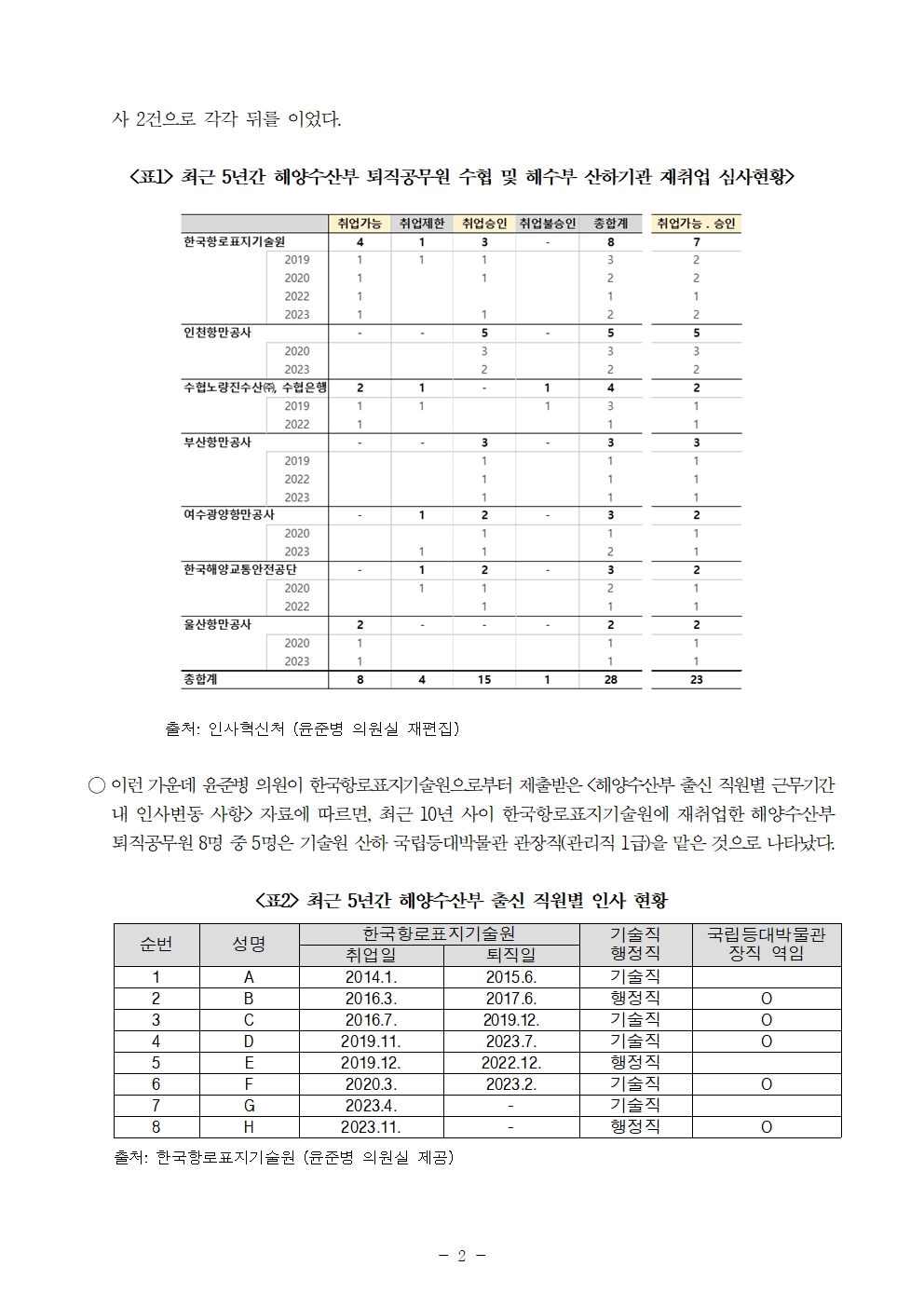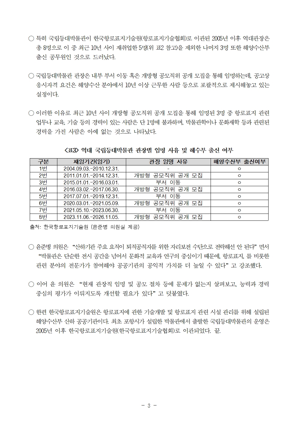 [윤준병 의원 국정감사 보도자료] 한국항로표지기술원 산하 국립등대박물관 관장_ 모두 해수부 출신