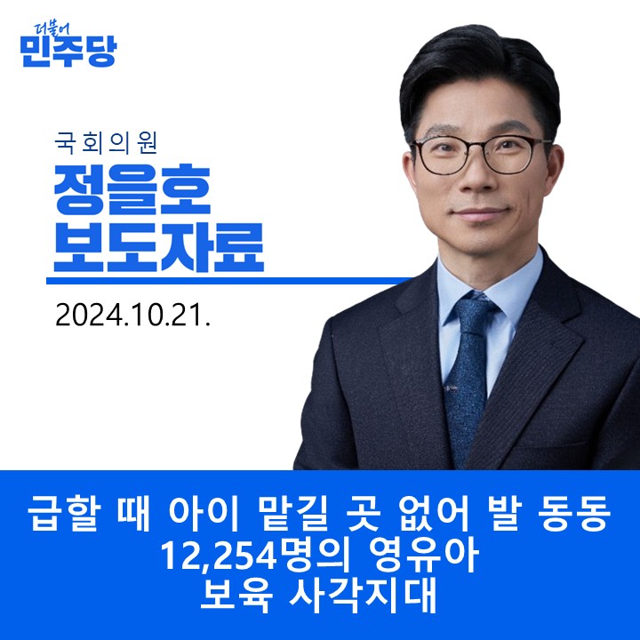 [국회의원 정을호 국감보도] 급할 때 아이 맡길 곳 없어 발 동동 12,254명의 영유아 보육 사각지대_241021