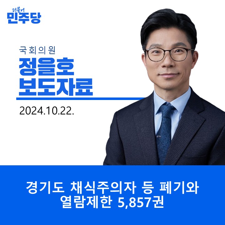 [국회의원 정을호 국감보도] 경기도 채식주의자 등 폐기와 열람제한 5,857권_241022