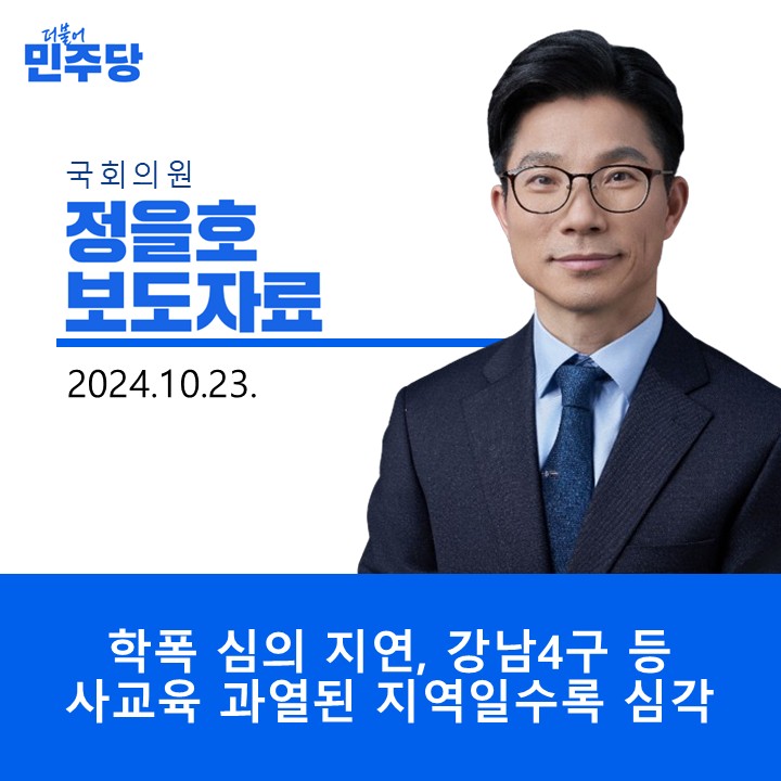 [국회의원 정을호 국감보도] 학폭 심의 지연, 강남4구 등 사교육 과열된 지역일수록 심각_241023