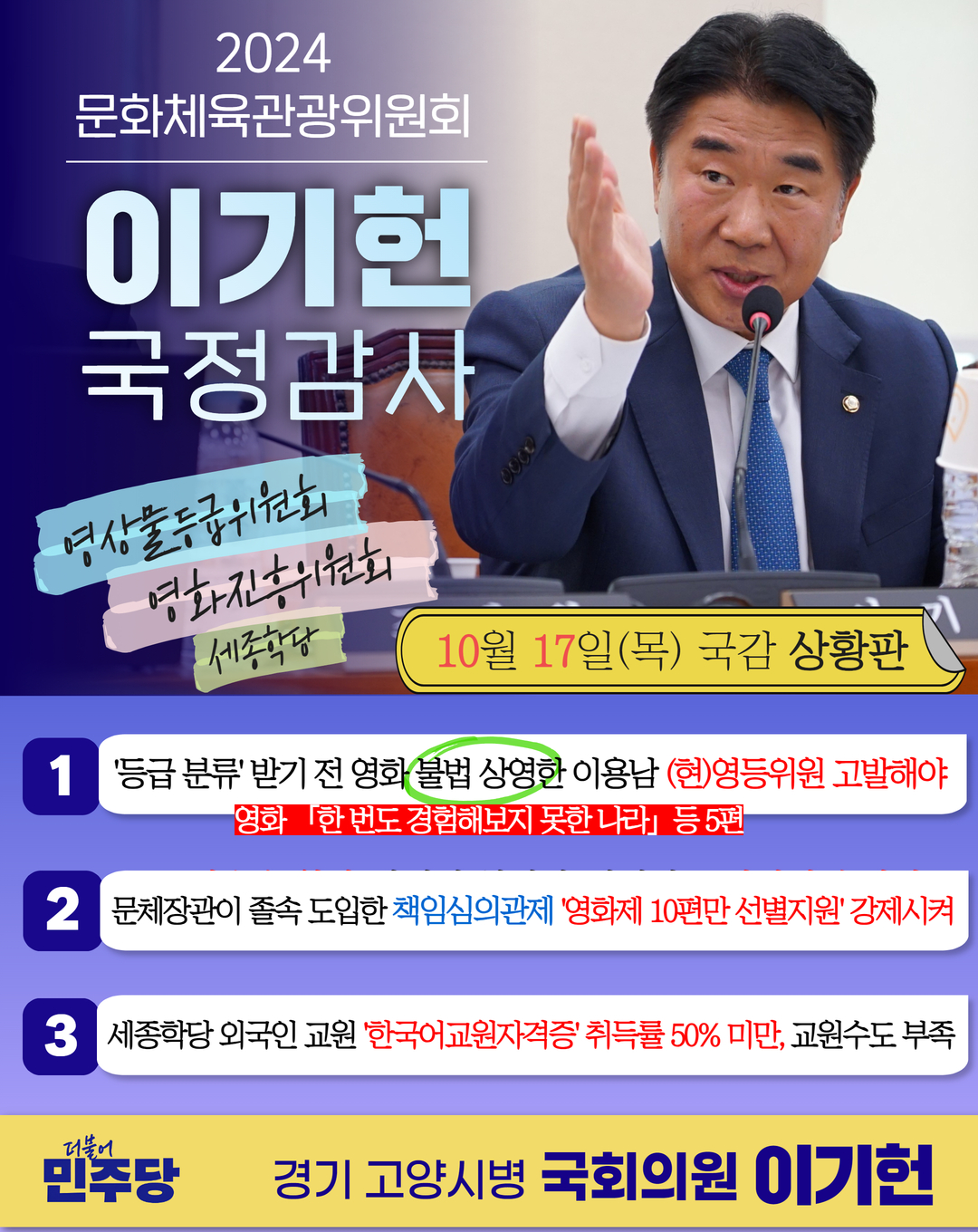 [이기헌 의원(고양시 병) 국감상황판]<4일차>