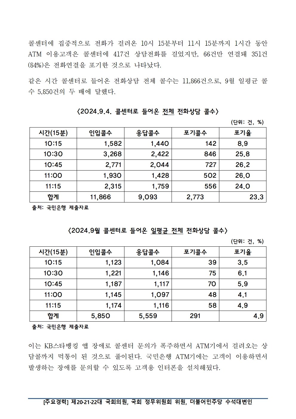 [국회의원 조승래] KB스타뱅킹 앱 장애로 ATM 콜상담도 마비...국민은행 책임 강화해야