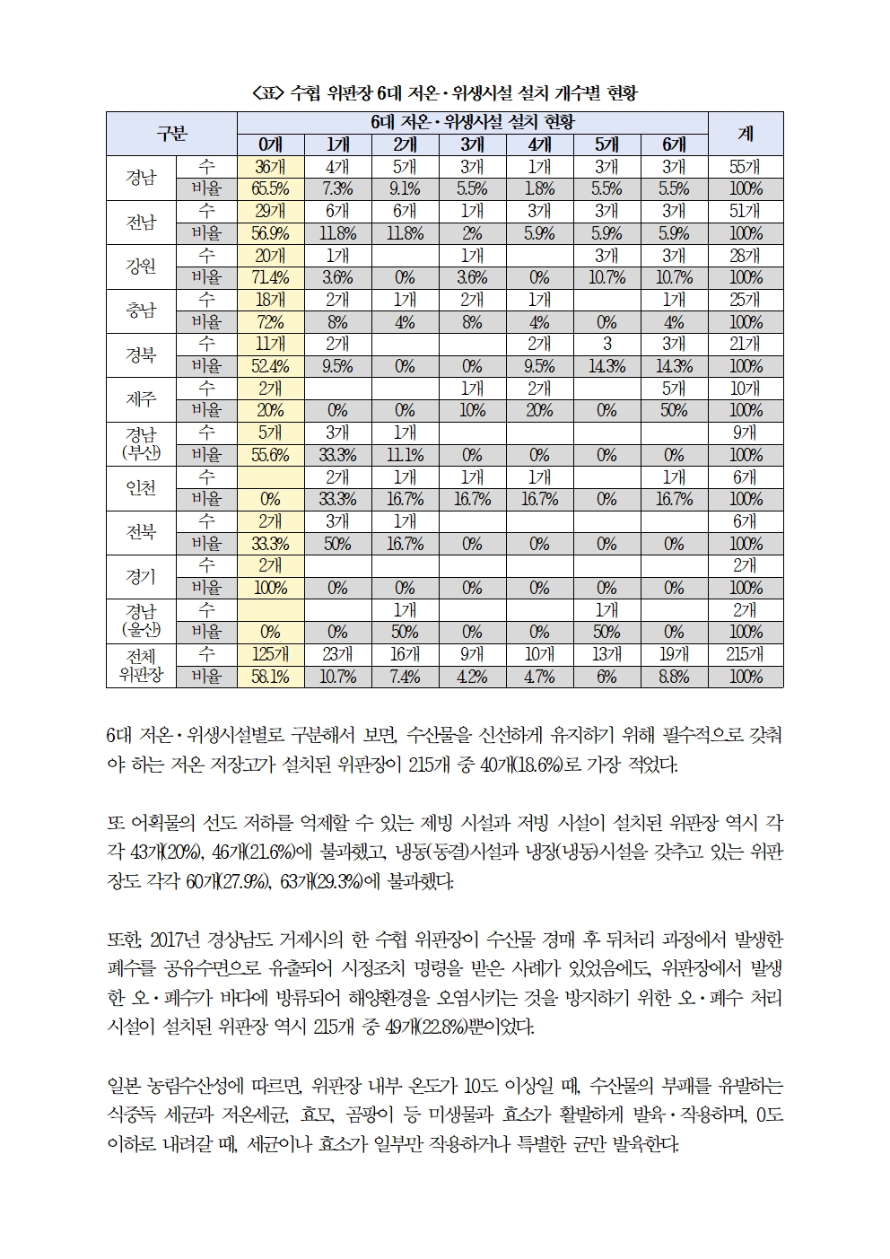 [문대림 의원 보도자료 - 수협] 위생 사각지대 수협 위판장 215개 위판장 중 6대 저온·위생시설 1개도 없는 위판장 125개.hwp