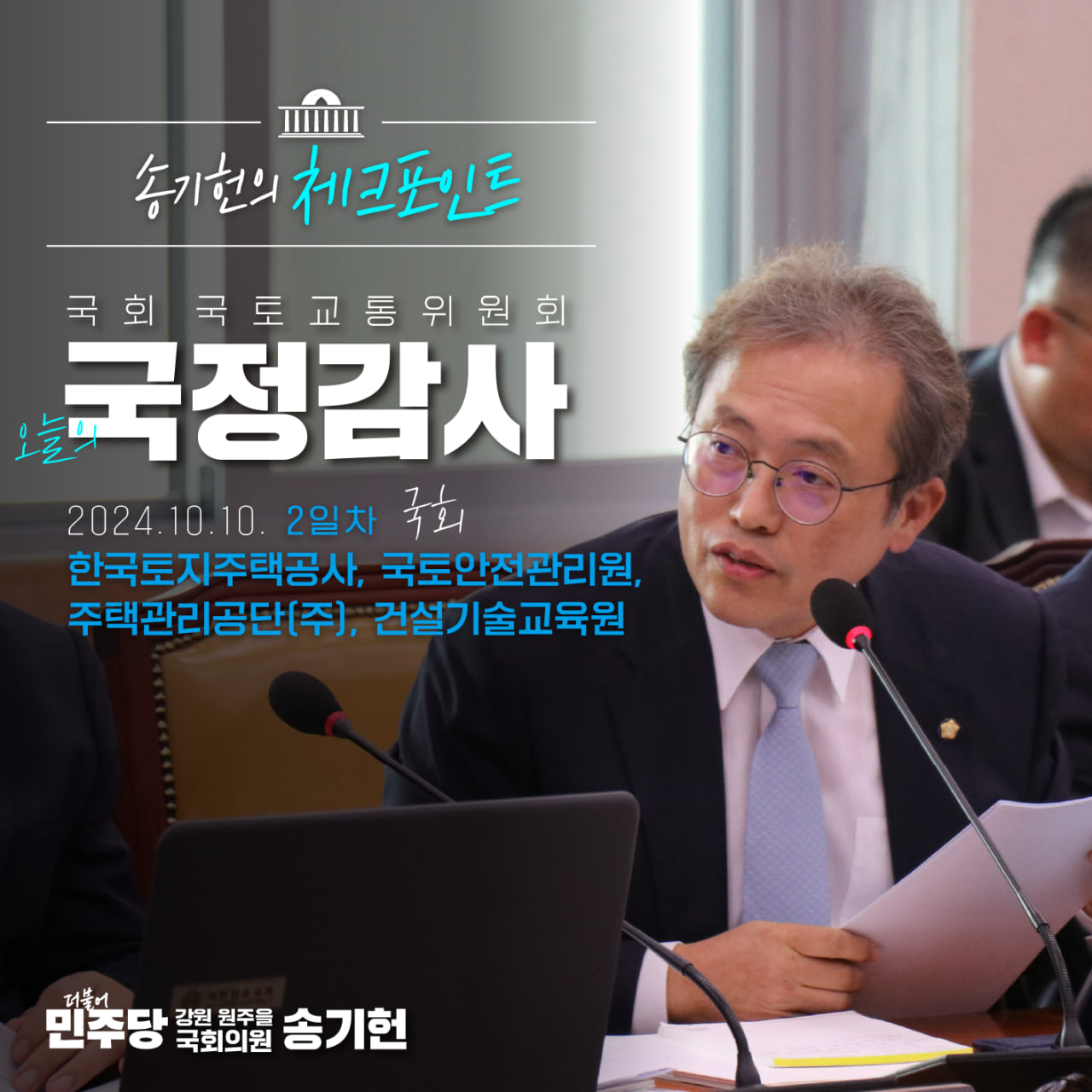 [국회의원 송기헌 카드뉴스] 국정감사 1일차, 송기헌의 체크포인트|국토교통부 및 전체 공공기관