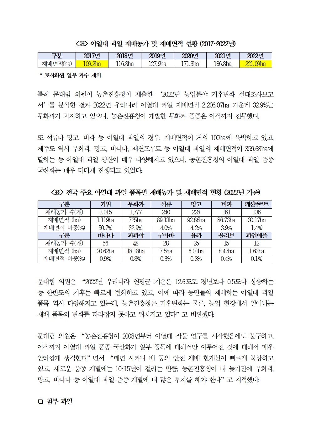 [문대림 의원 보도자료 - 농촌진흥청] 농진청 아열대 과일 신품종 개발 0건.hwp