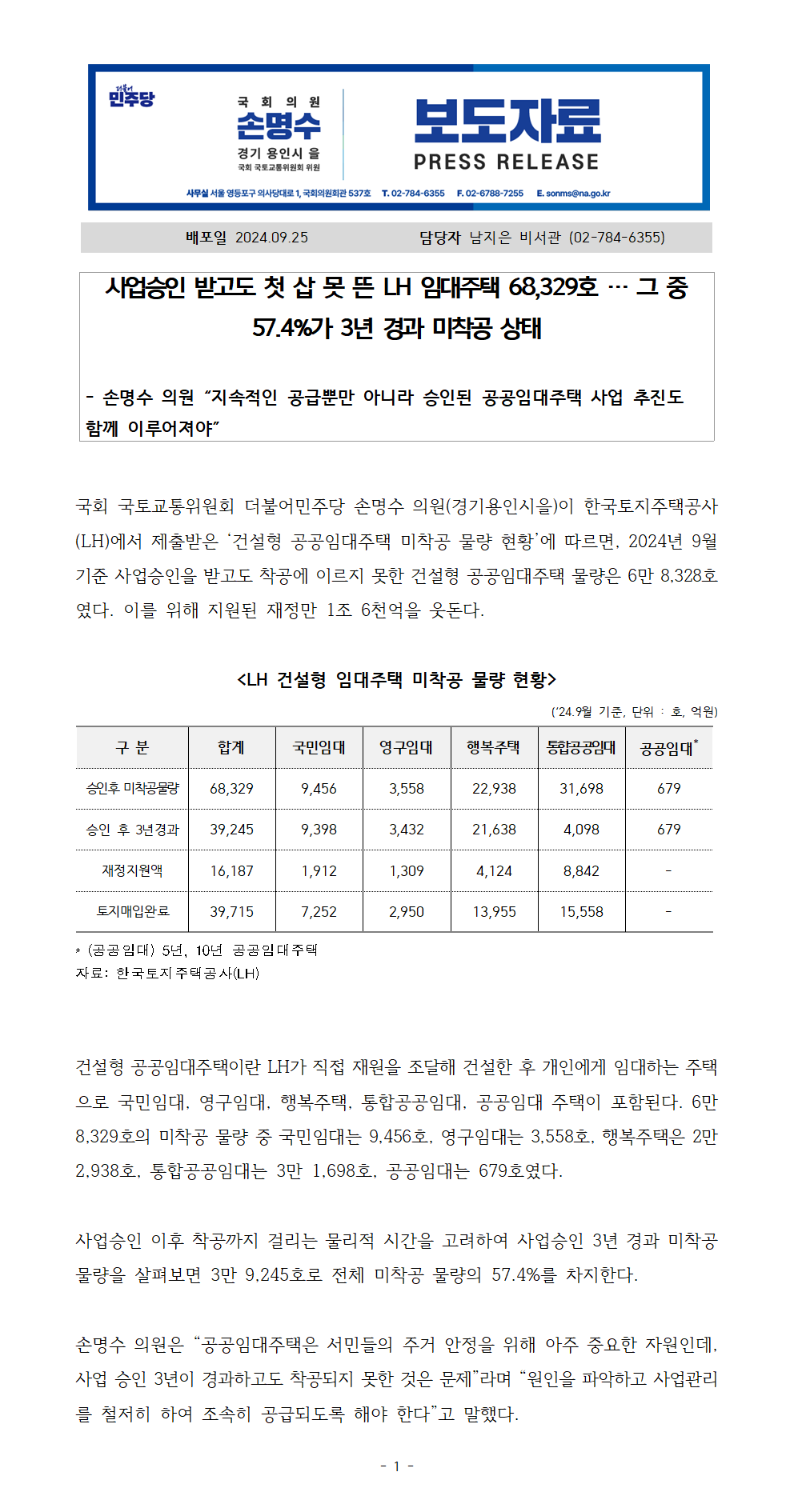 241002_손명수의원실_보도자료_사업승인받고도_첫삽못뜬_LH임대주택68329호.hwpx