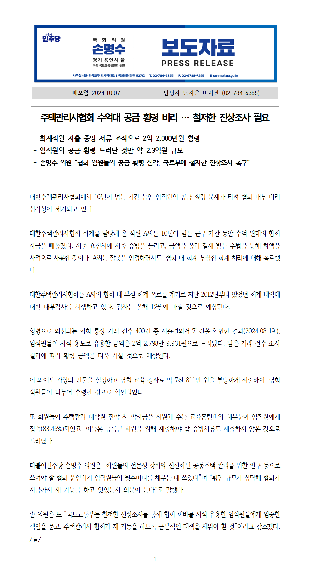 241007_손명수의원실_보도자료_대한주택관리사협회_수억대_공금_횡령.hwp