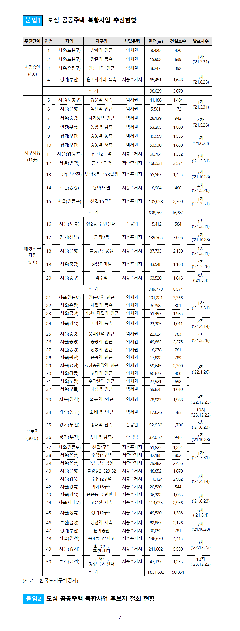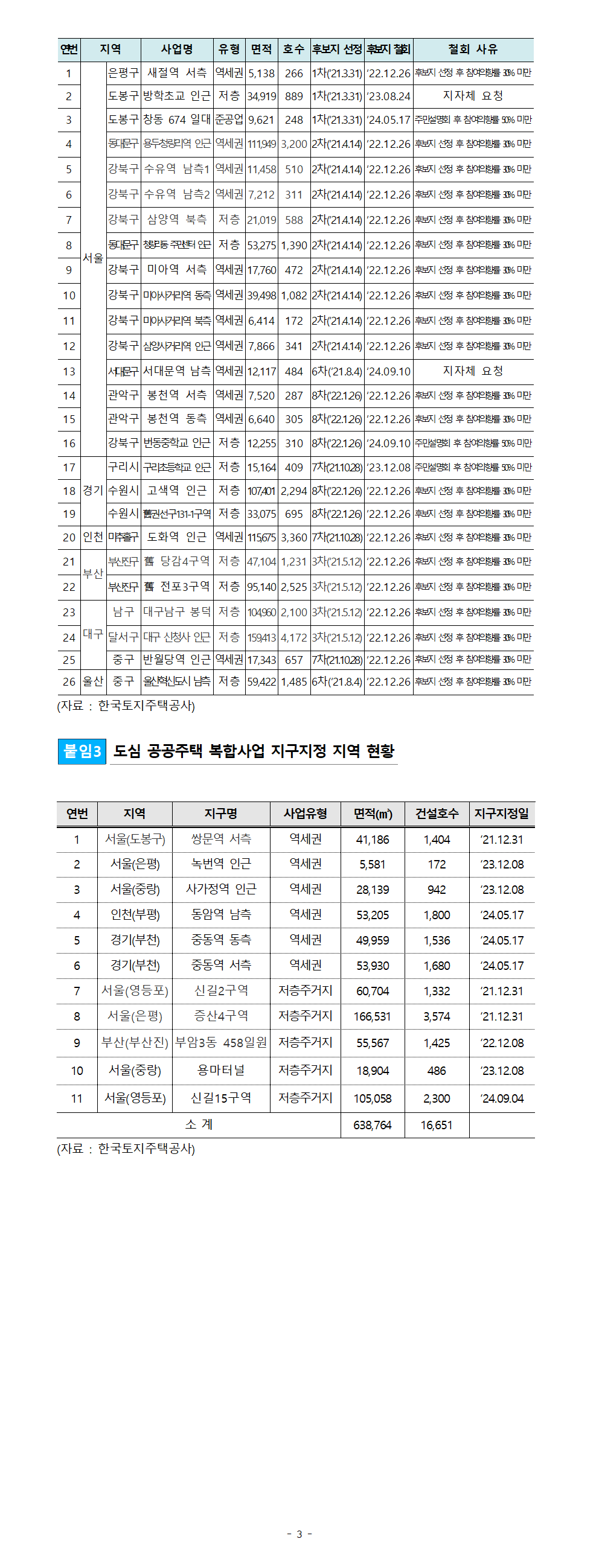 [국회의원 손명수] 도심공공주택복합사업 일몰기간 연장됐지만... 후보지 철회만 벌써 29곳