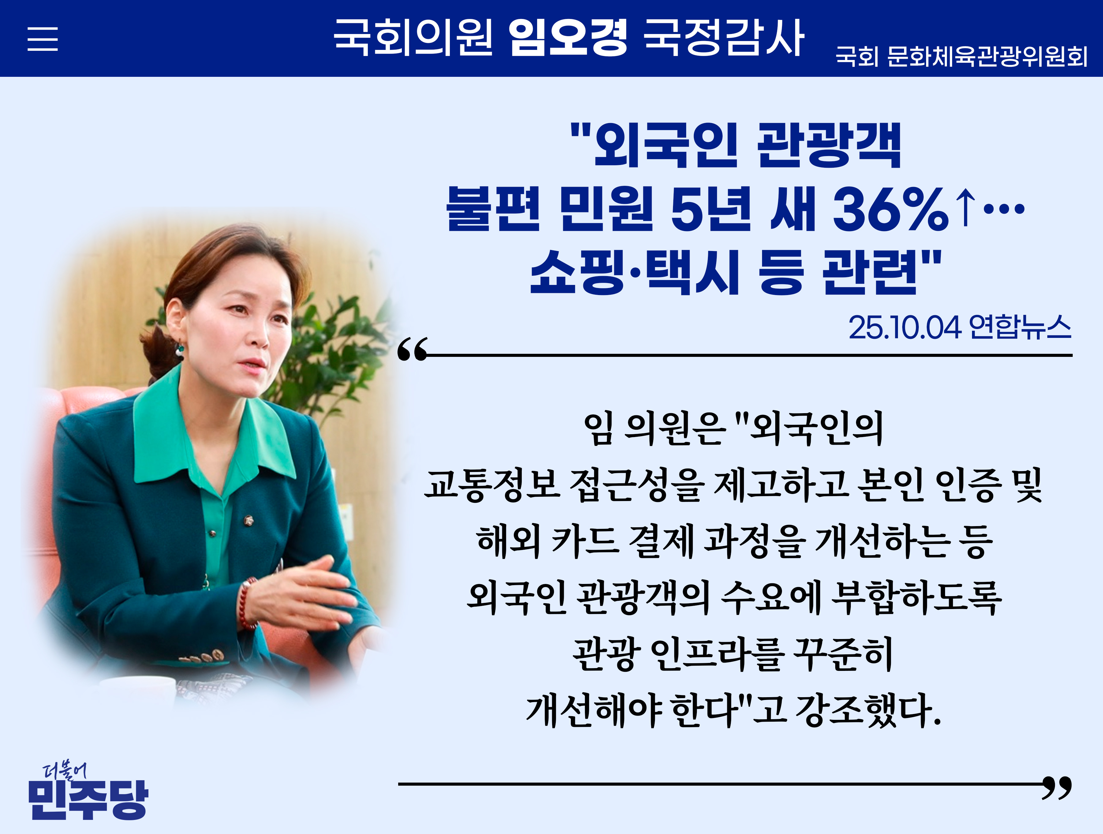 [임오경 카드뉴스]연합뉴스 / "외국인 관광객 불편 민원 5년 새 36%↑…쇼핑·택시 등 관련"