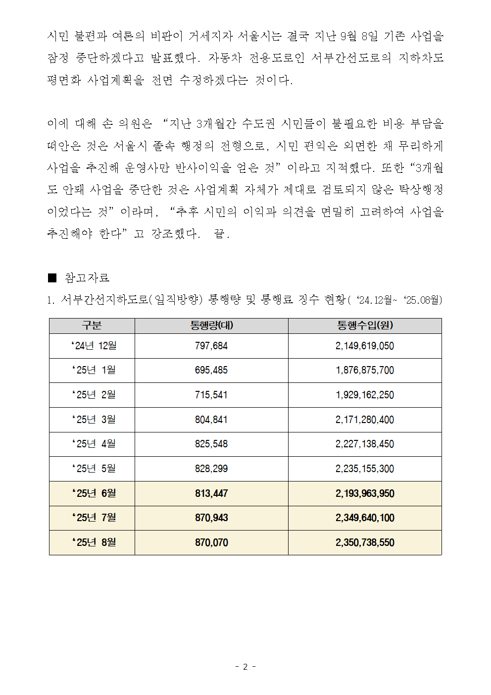 250912_교통지옥_서부간선도로_공사_유료_지하도로만_웃었다_통행량_6만대_폭증_손명수의원.hwp