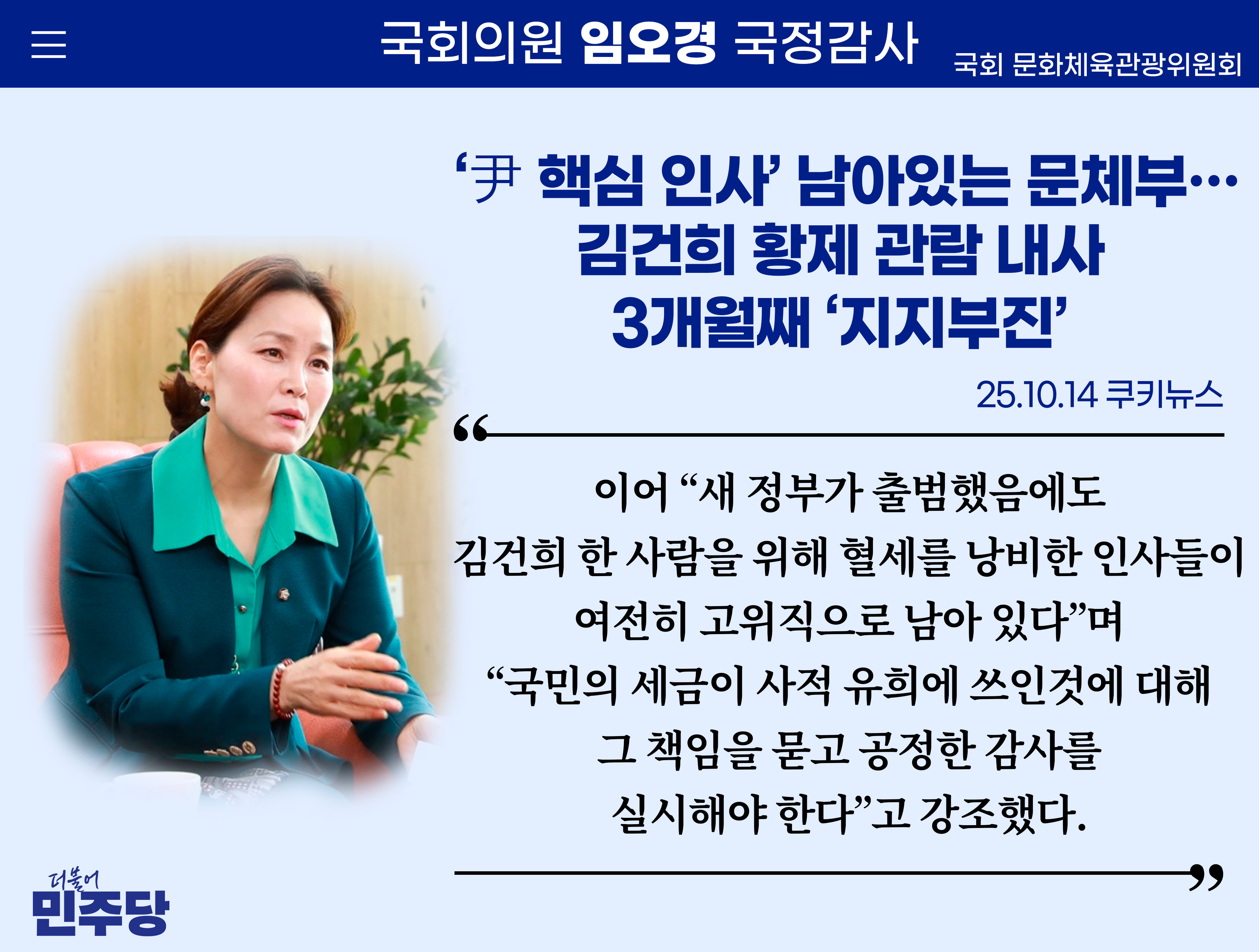 [임오경 카드뉴스]쿠키뉴스 / [단독] ‘尹 핵심 인사’ 남아있는 문체부...김건희 황제 관람 내사 3개월째 ‘지지부진’