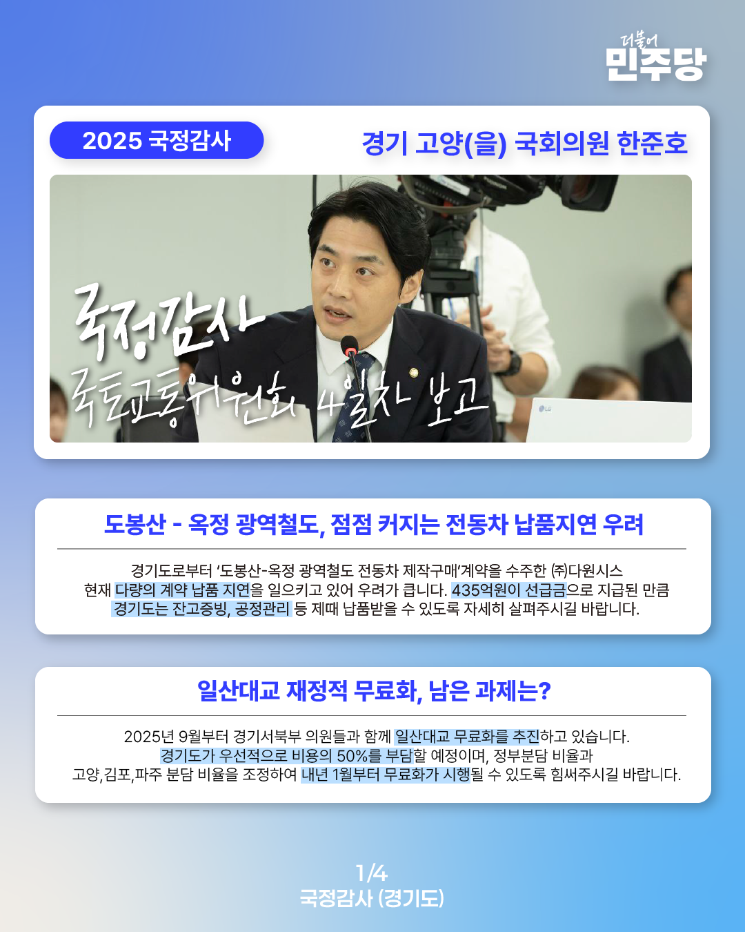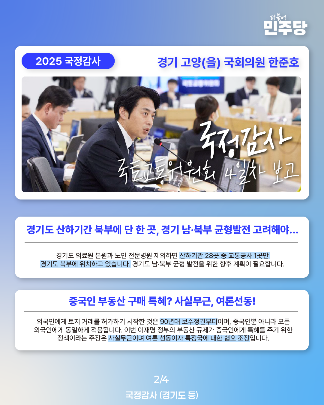 [국회의원 한준호 2025 국정감사 웹자보] 국정감사 4일차 보고