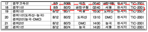 한준호 의원이 코레일로부터 제출받은 자료에 따르면, 당초 인접 선로 열차의 운행계획은 2024년 8월 9일 오전 2시 40분이었다(그림 1). 그런데 실제로는 그보다 이른 오전 2시 10분에 운행을 시작해, 2시 16분에 사고가 발생한 것이다.