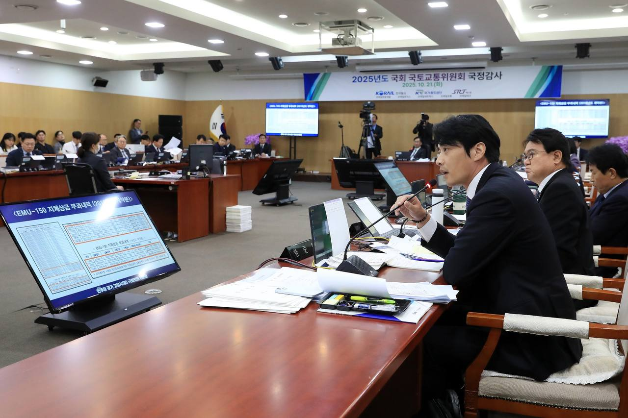 어제(21일) 국토교통위 철도기관 대상 국정감사에서 한준호 의원(더불어민주당, 경기 고양을)이 납기지연을 일삼아온 ㈜다원시스 박선순 회장을 질타했다.