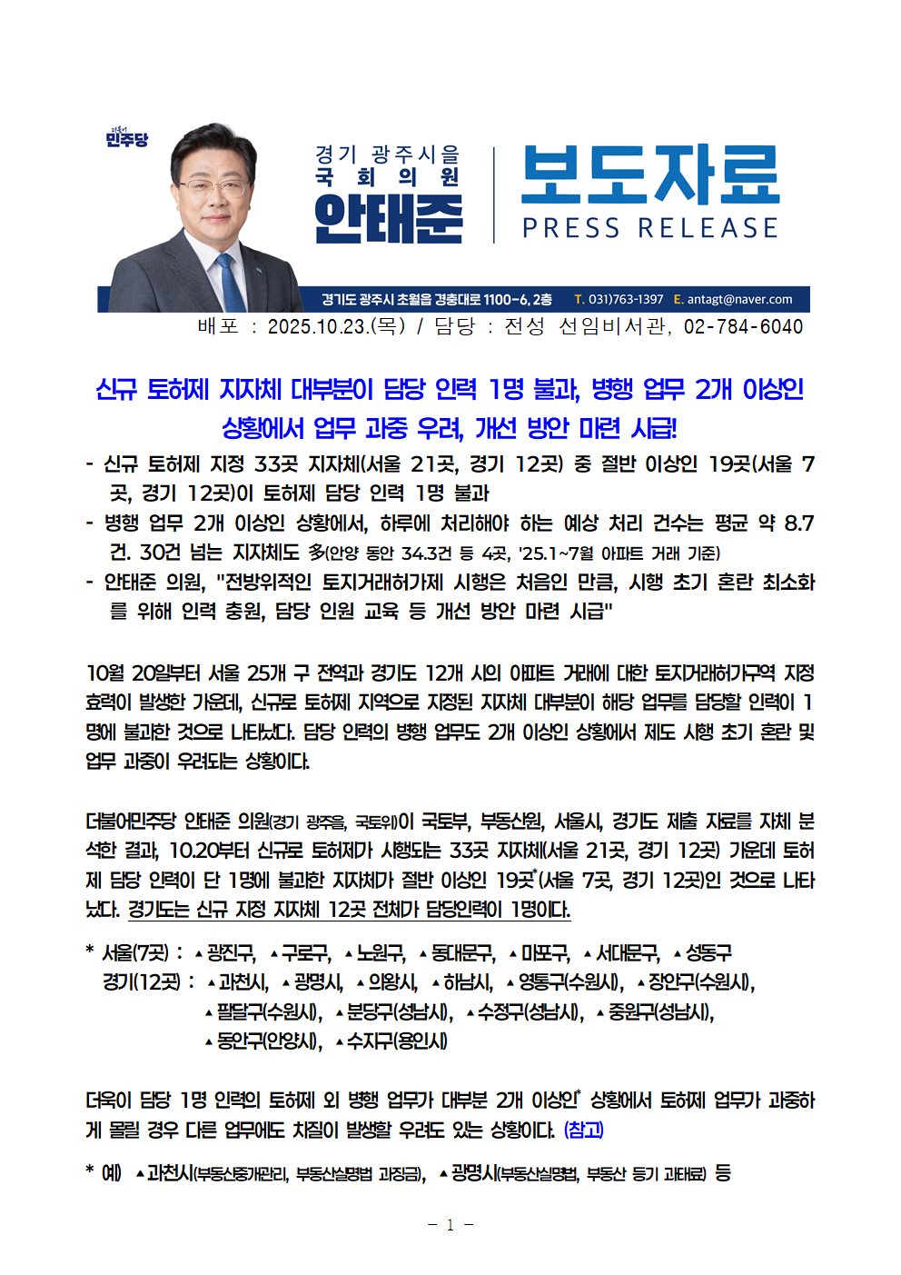 251023_안태준_의원_보도자료_1_신규_토허제_지역_담당_인력_대부분_1명_불과_업무_과중_우려.hwp