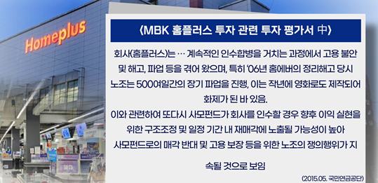 ○ 국민연금의 MBK 투자가 박근혜 정권 차원에서 이루어진 약탈적 자본에 대한 기관투자라는 지적이 제기되었다.
