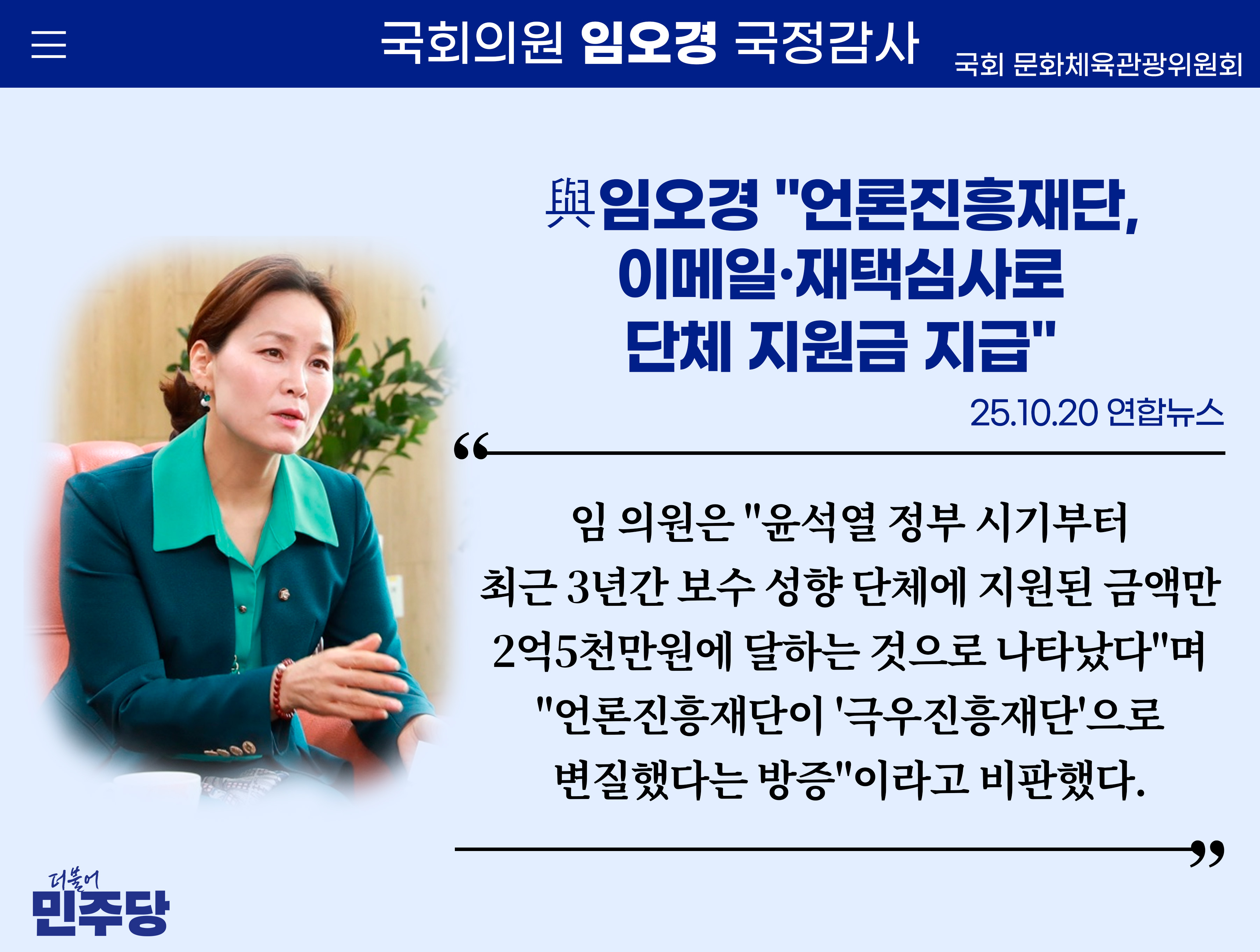 [임오경 카드뉴스] 與임오경 "언론진흥재단, 이메일·재택심사로 단체 지원금 지급"