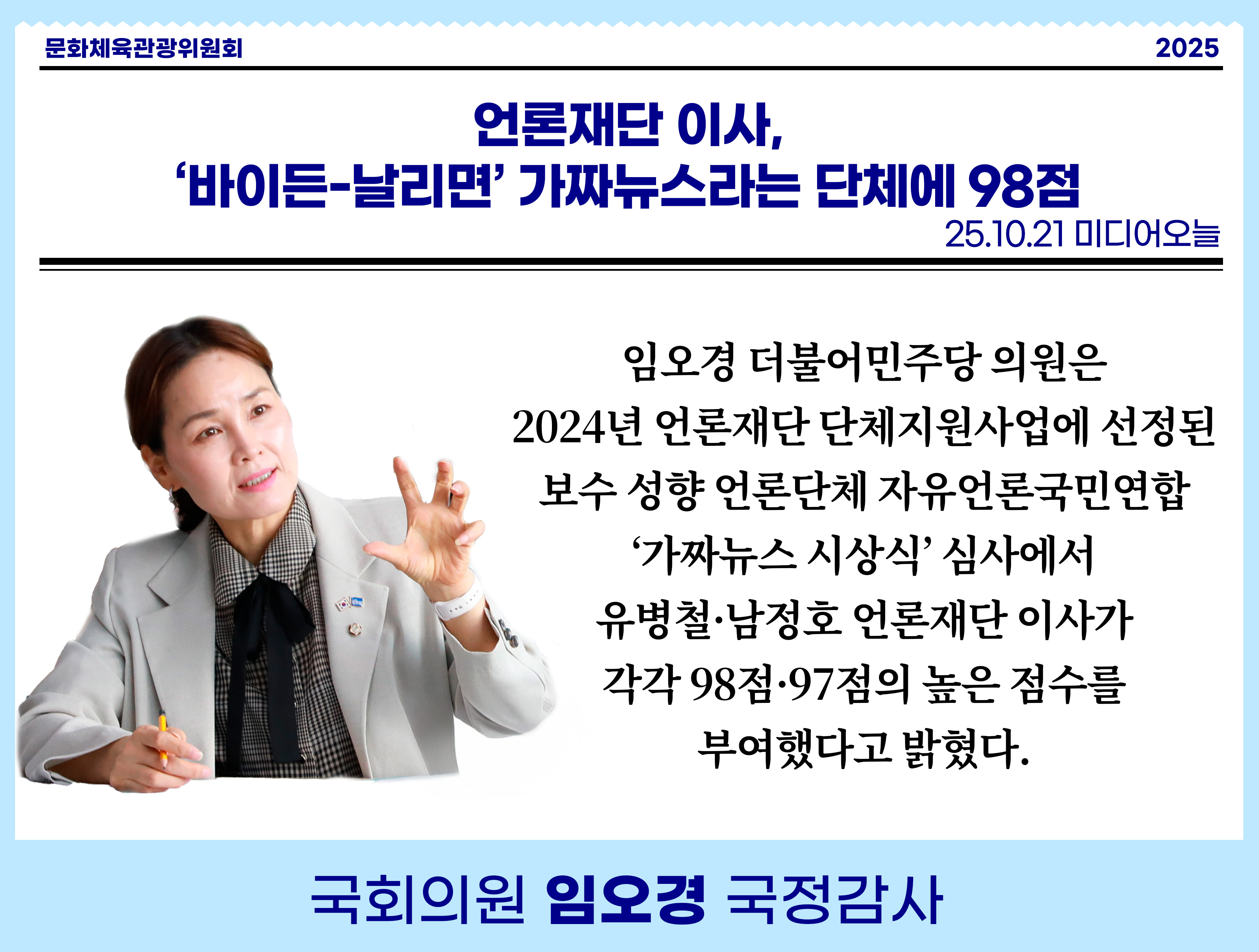 [임오경 카드뉴스]언론재단 이사, '바이든-날리면' 가짜뉴스라는 단체에 98점