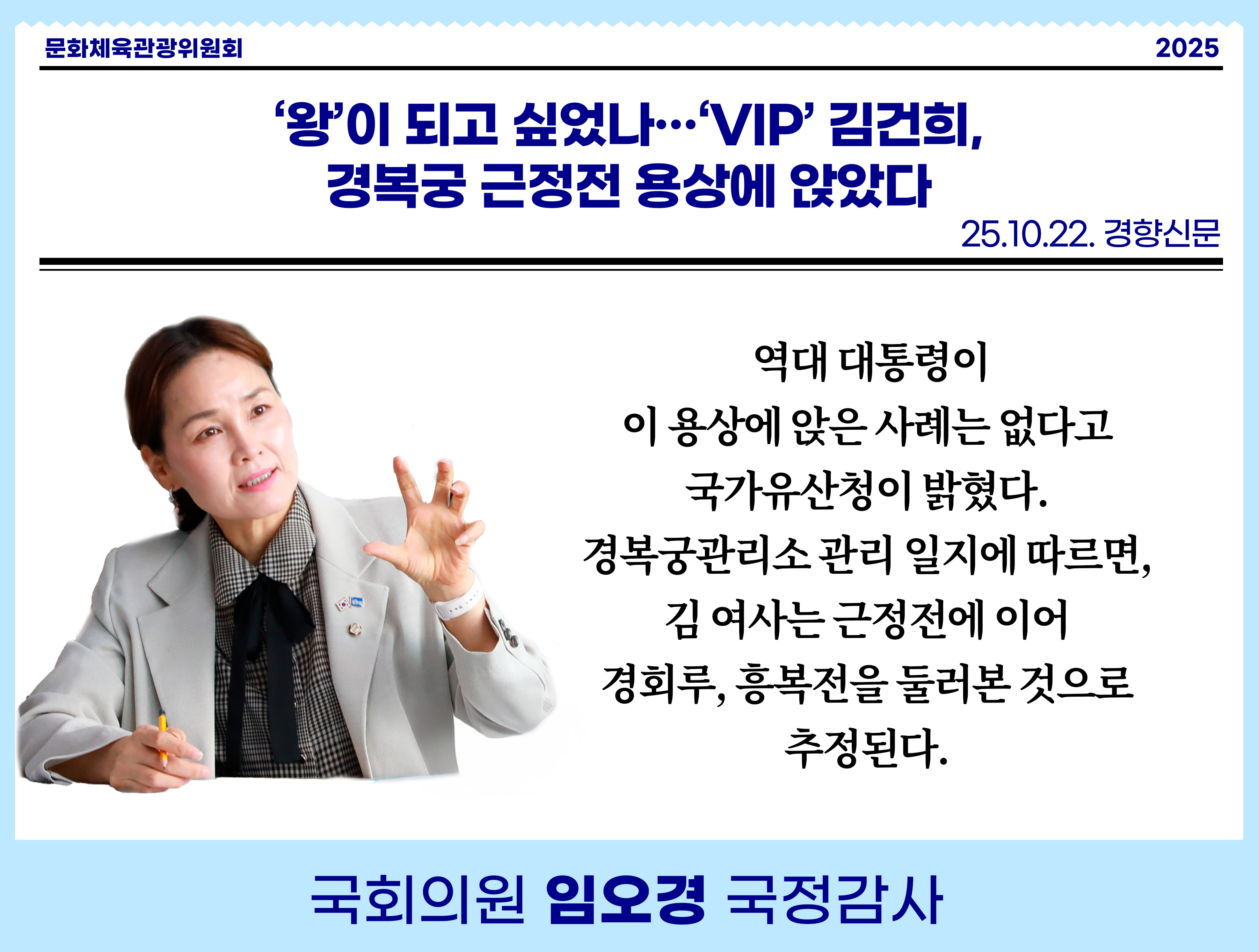 [임오경 카드뉴스] ‘왕’이 되고 싶었나···‘VIP’ 김건희, 경복궁 근정전 용상에 앉았다