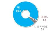 사회서비스원 서비스 계속 이용할 의향이 있는지 파악하는 질문에 전체 응답자의 95.6%그렇다고 응답했다. ‘의향 없음1.3%, ‘잘 모르겠다3.1%에 불과했다.
