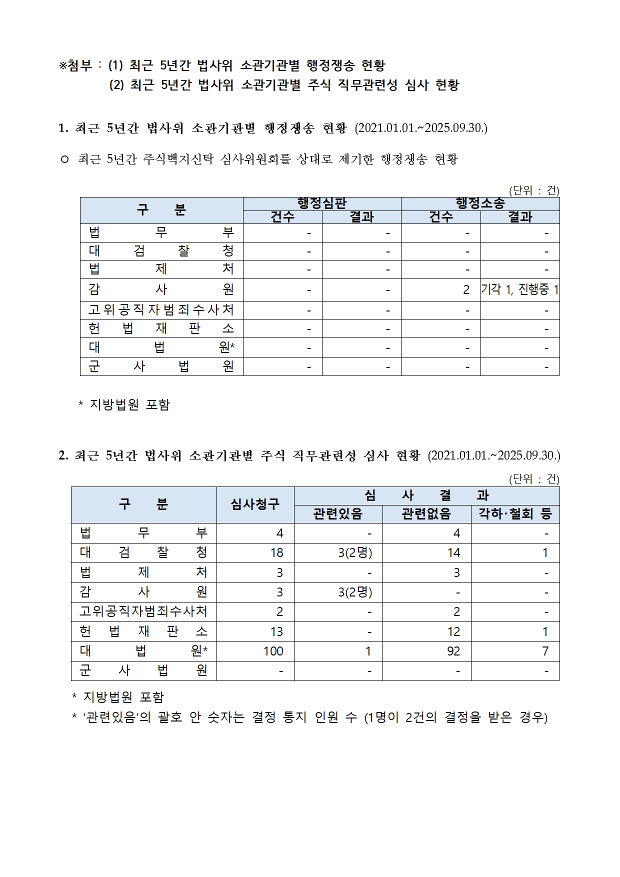 [박균택 의원 국정감사 보도자료] ‘직무 관련 주식 못 판다’며 정부 상대 소송도 불사하는 감사원 공직자? 유병호가 ‘유일’