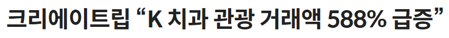 □ 대표적인 여행사 중 하나인 크리에이트립은 현재 외국인 관광객에게 치과 및 피부과 시술을 연계한 의료관광 상품을 판매 중이다. 해당 기업은 보도자료를 통해 “올해 3분기 치과 관광 거래액이 전년 대비 588% 증가”했다고 밝힐 만큼 높은 성장세를 보였다. 그러나 이 업체는 ‘간단손해보험대리점’등록을 유지한 채 작년에 외국인환자 유치업자 면허를 연장하며 사업을 지속하고 있다.