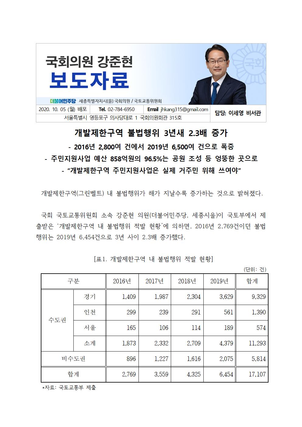 201005_강준현국정감사보도자료_개발제한구역_불법행위_3년새_2_3배_증가.hwp