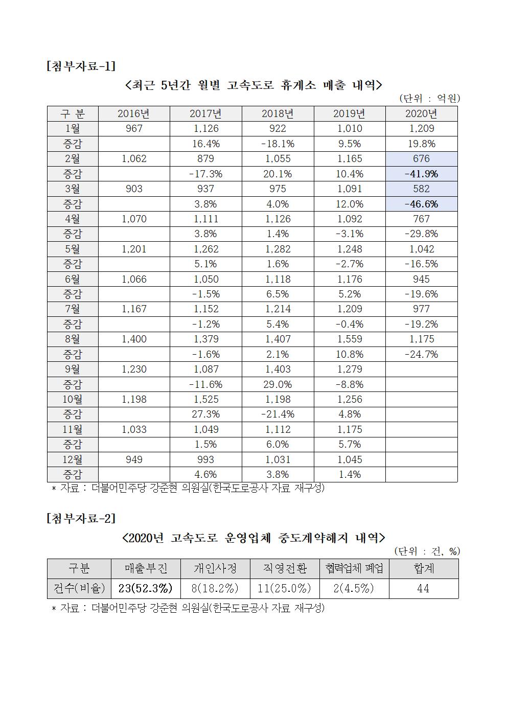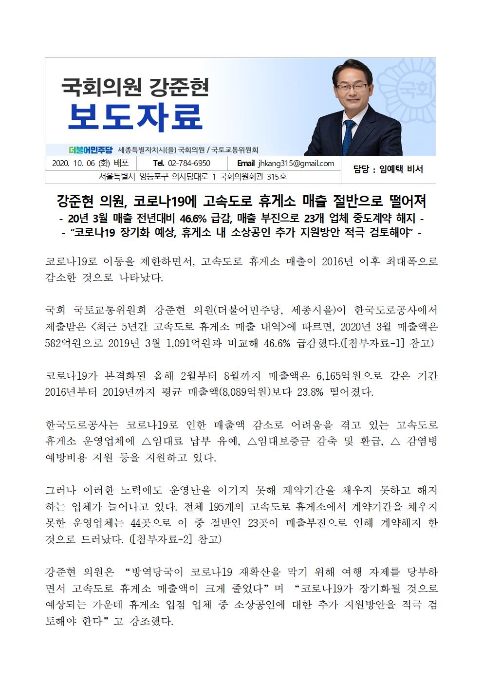 201006_강준현의원국감보도자료고속도로휴게소_코로나19로_매출_47퍼센트_급감.hwp