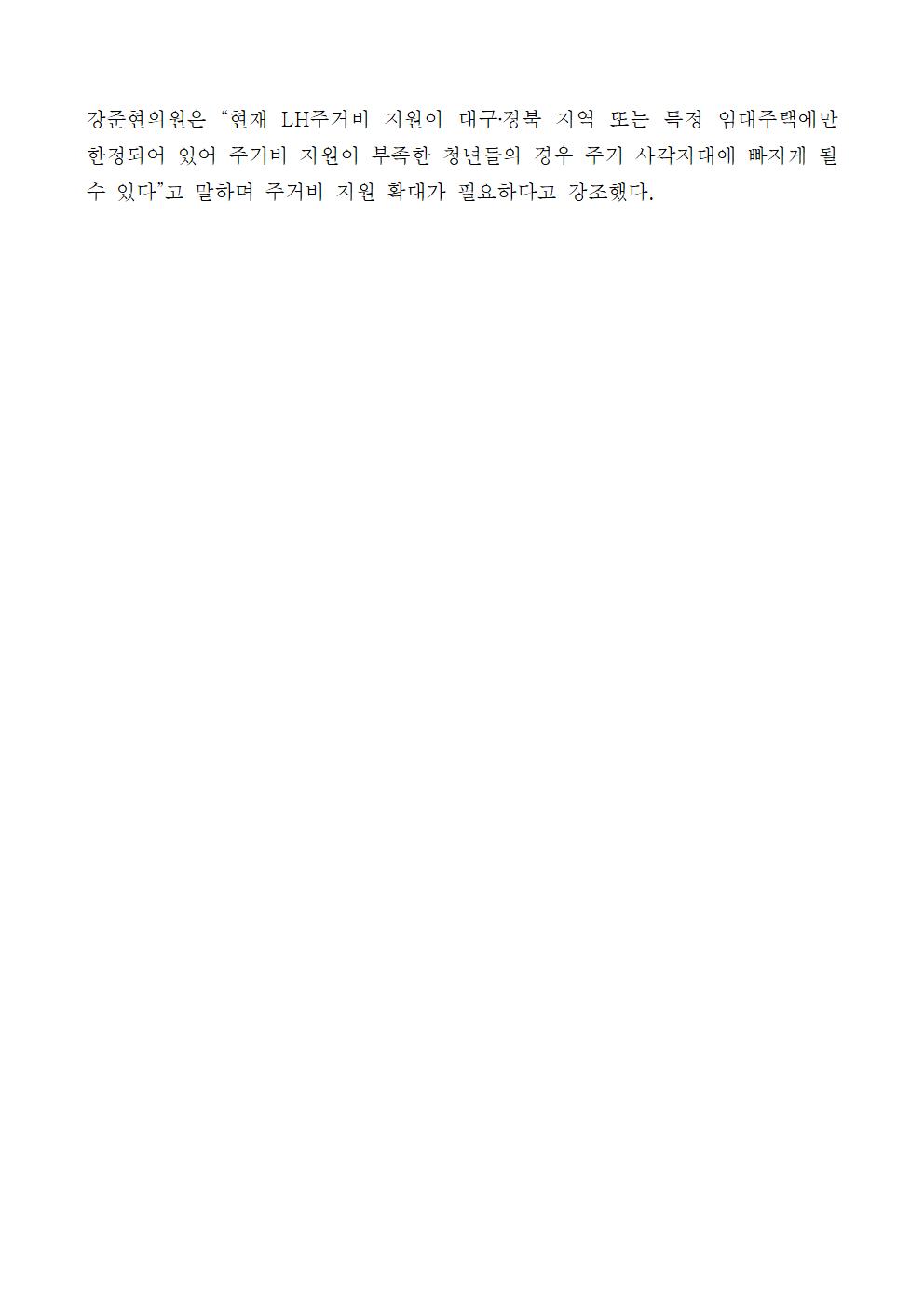 [강준현 국회의원] 주거에 가장 취약한 계층은 청년, 청년에 대한 주거비 지원 확대 필요